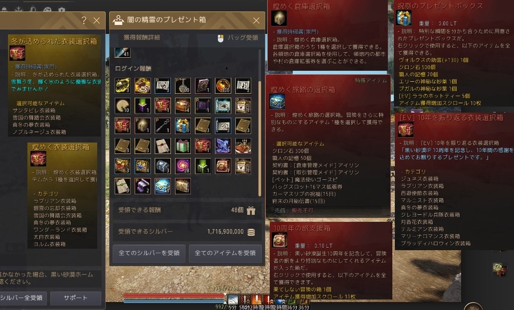 祝祭のプレゼントボックスは、助言130とクロン石500個ほか全部か。