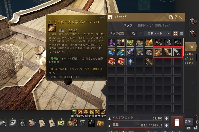 後でまとめてNPCに処分しよう。一応まだもう1日くらい釣れますしね。
