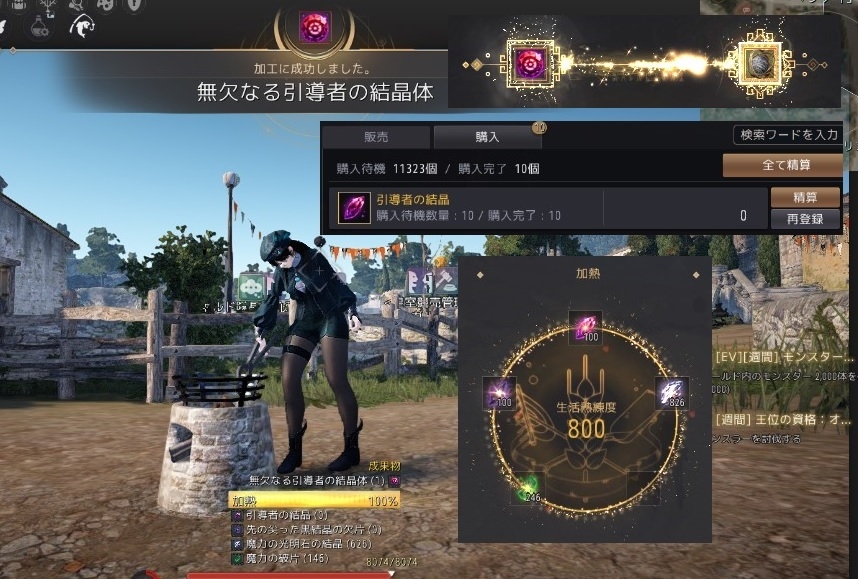 あとは尖った100個と魔力の破片と光明石の欠片とで加熱。