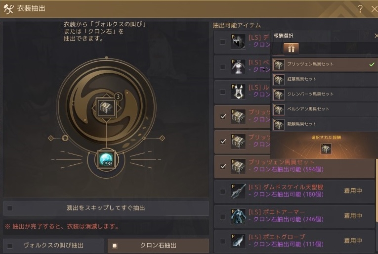 馬具のアバターから、クロン石を抽出出来るようになりました。