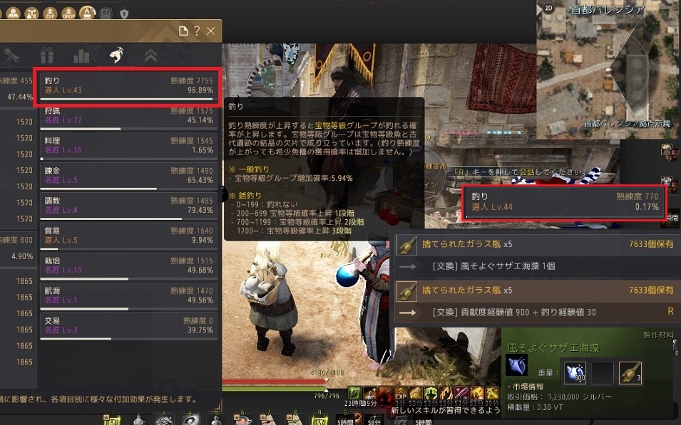 釣り経験値が97%くらいから、残りは捨てられたガラス瓶の交換で経験値増やしました。