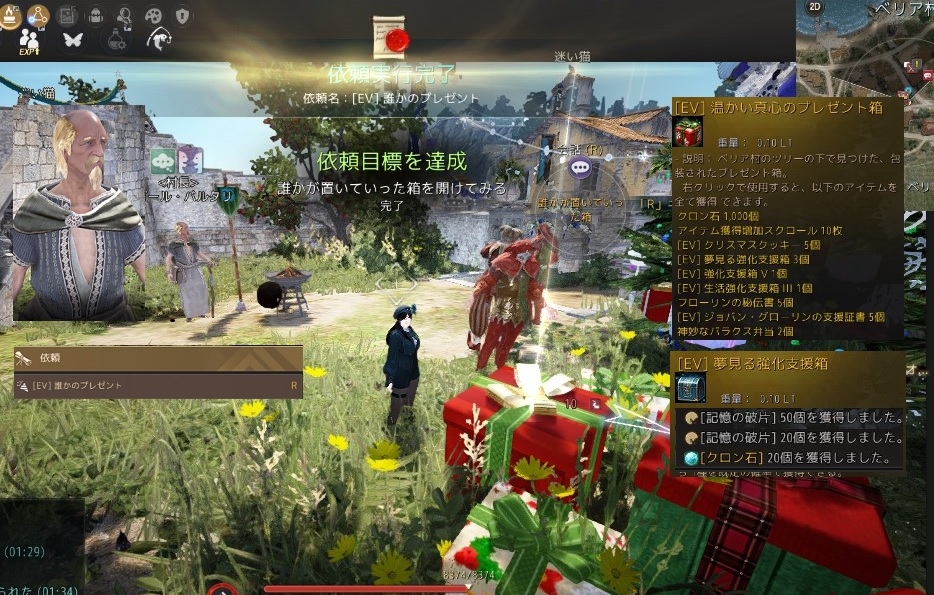 ベリアの村長に話しかけ、クエを受け、近くにある木の下から箱拾って終わり。