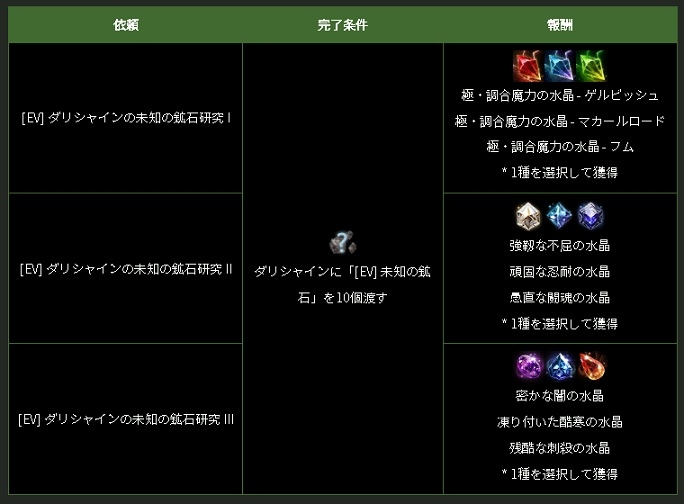 【イベント1:ダリシャインの未知の鉱石研究!】01/15~01/29