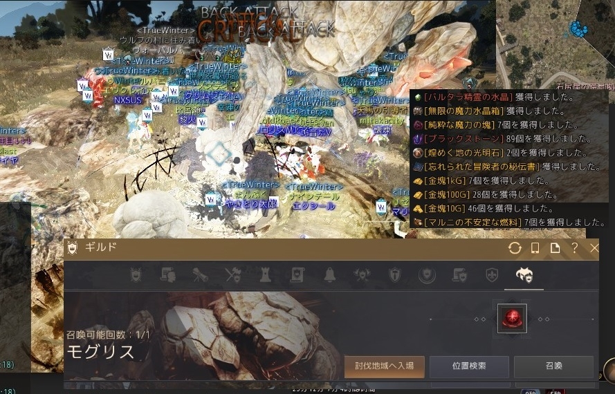 該当ボスの場所に移動して、ギルド画面開いて、入場して退場して移動して入場して・・。