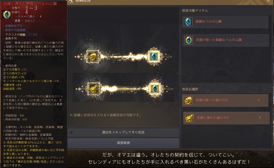 豪華な破壊の錬金石を240Gで購入して加護い満ちた華麗なベルの心臓作成03