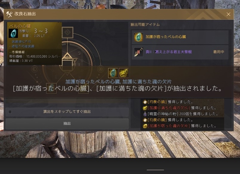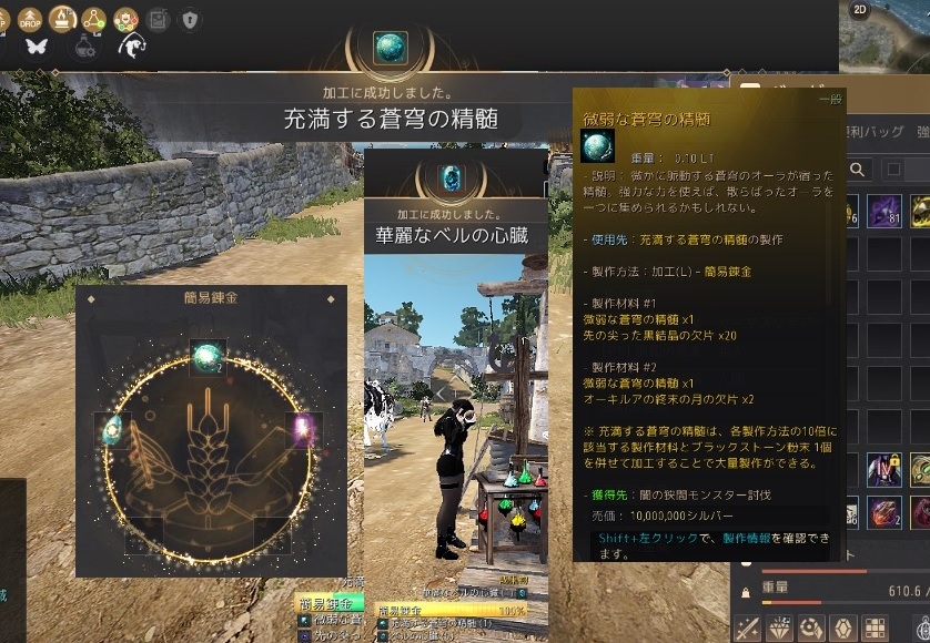 豪華な破壊の錬金石を240Gで購入して加護い満ちた華麗なベルの心臓作成【黒い砂漠Part5304】