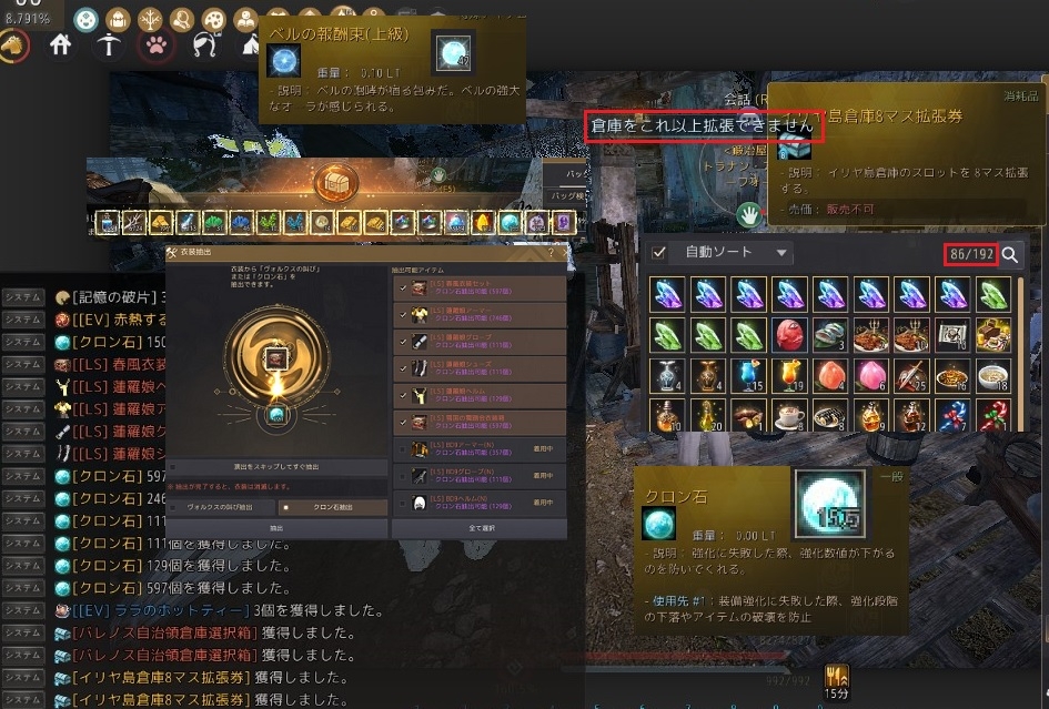 開封したら「倉庫をこれ以上拡張できません」のメッセージ。