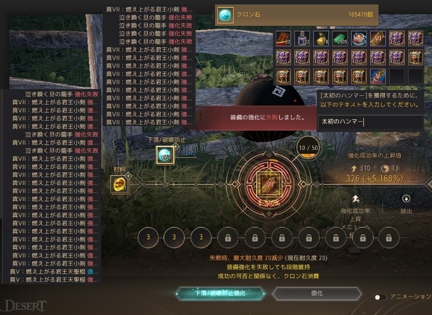 強化失敗しまくってハマってる時には、別のところに運が蓄積されてる説。