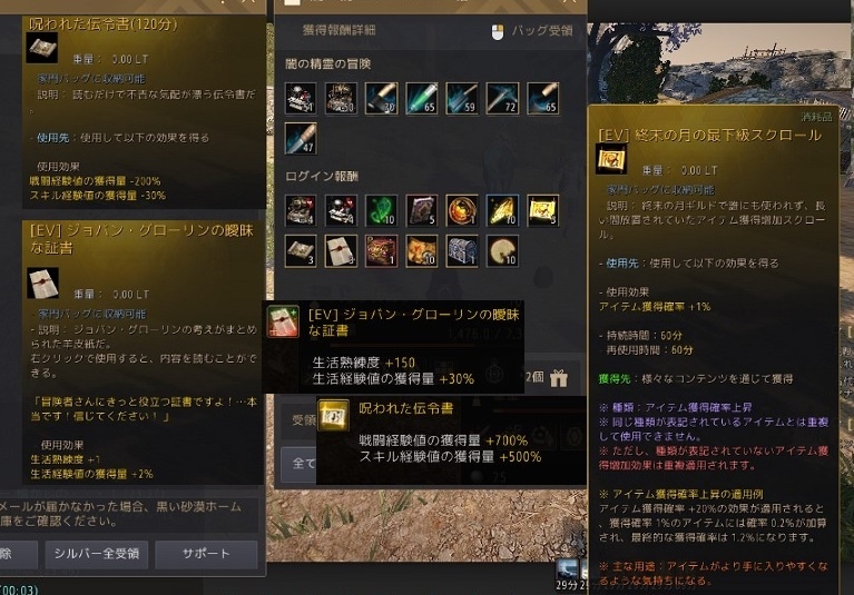呪われた伝令書 戦闘経験700% スキル経験500%