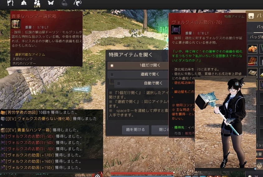 で、ハンマー箱からは、装備出来るハンマーと、貴重なハンマー選択箱出てきた。