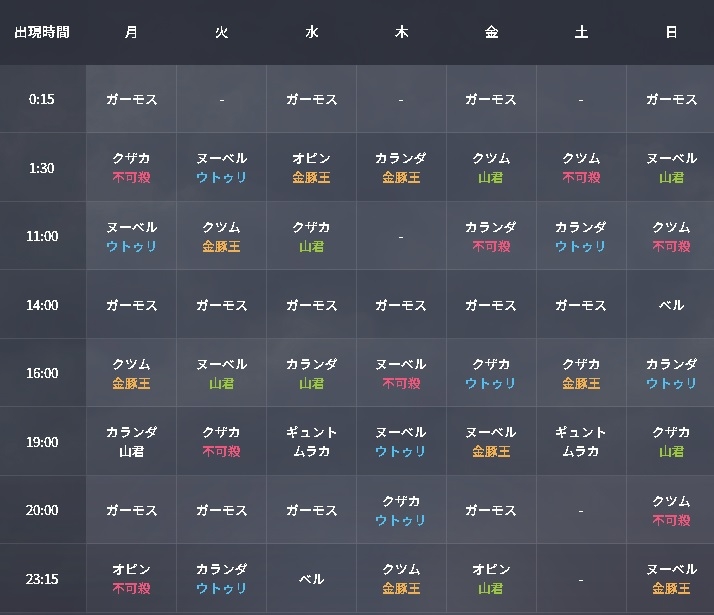 【ワールドボスの沸き時間一覧】※2025/12/25 最新状態確認